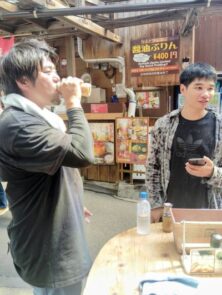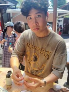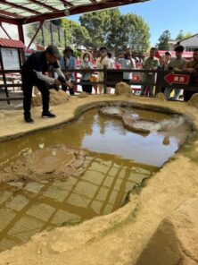 かまど地獄ではお兄さんが煙を使った実験をしていました。