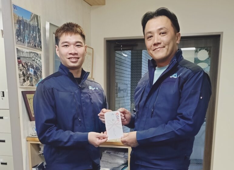 2026/03/11 未分類 LINEで送る Tweet 弊社の社員で特定技能として働いているD君が 昨年末にベトナムへ帰国し、結婚いたしました。 昨日、日本に戻ってきて今日からまた仕事に加わりました。 今日、事務所に挨拶に来て、皆からおめでとうの言葉と 社長からお祝いをいただきました。 これからも新世で頑張ってくださいね! LINEで送る Tweet