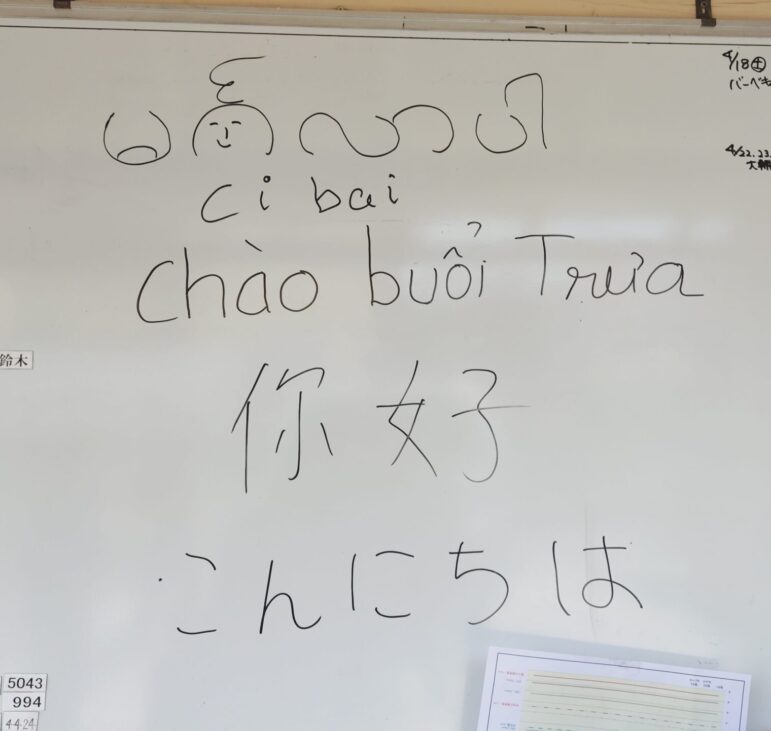 上からミャンマー語、ベトナム語、中国語、そして日本語。